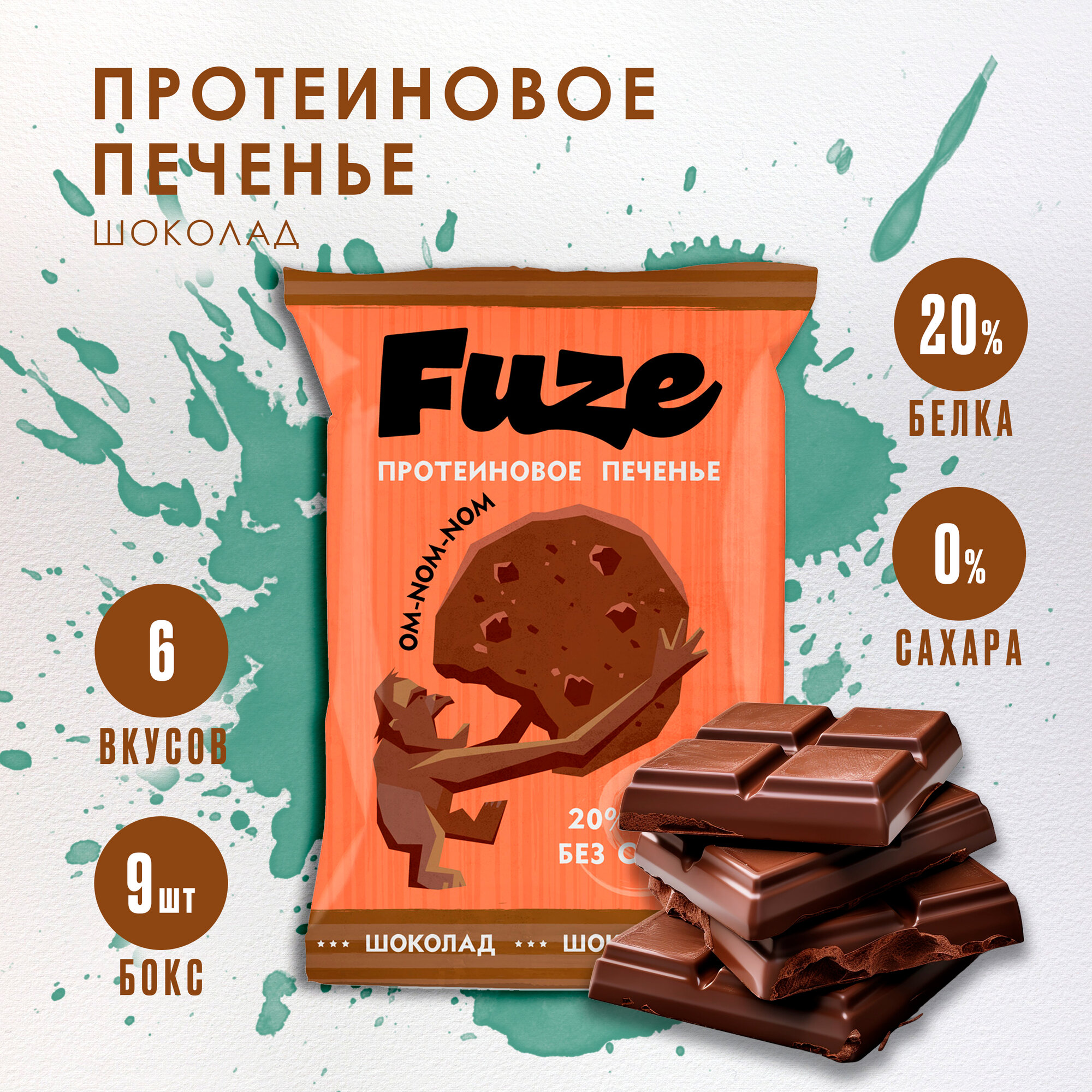 Купить Печенье протеиновое 20% белка Шоколад Fuze, десерт без сахара ПП сладость, спортивное печенье 9 шт*40г