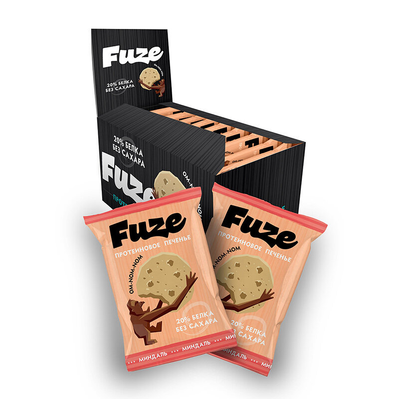 Печенье протеиновое без сахара Fuze. Вкус Миндаль (бокс = 9 уп.)