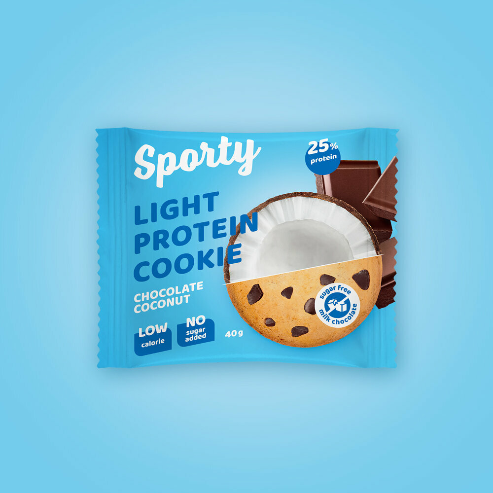 Печенье SPORTY Protein Light без сахара "Шоколад-кокос", 12шт*40г, SPORTY