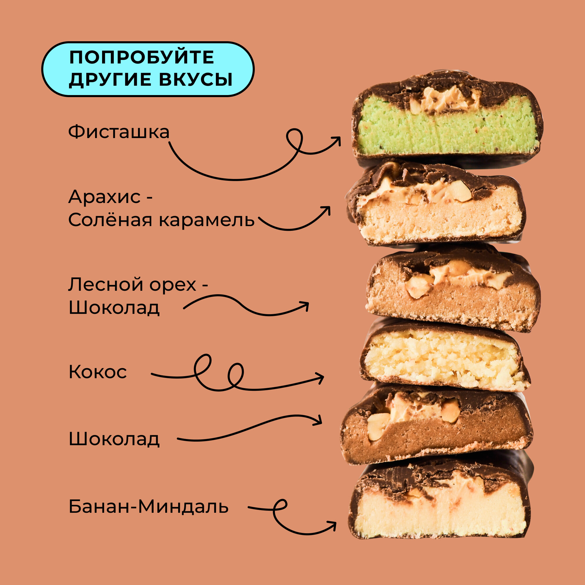 | Вкус | арахис-соленая карамель / ассорти / ассорти 3 вкуса / ассорти всех вкусов / банан-миндаль / капучино / кокос / малина / фисташка / шоколад / шоколад-лесной орех |