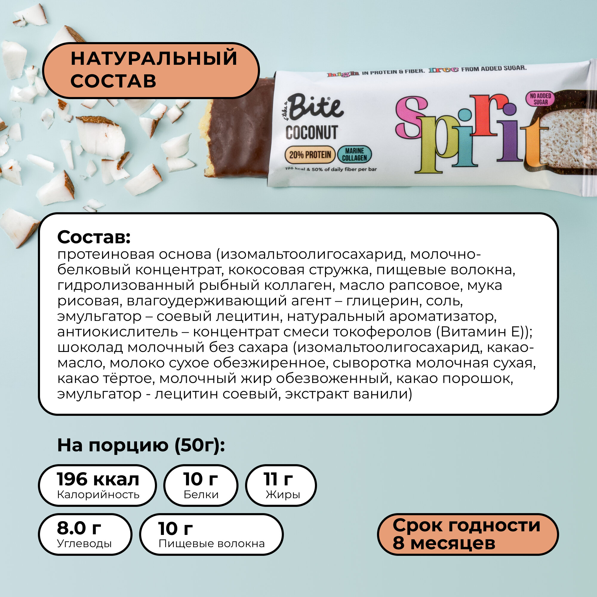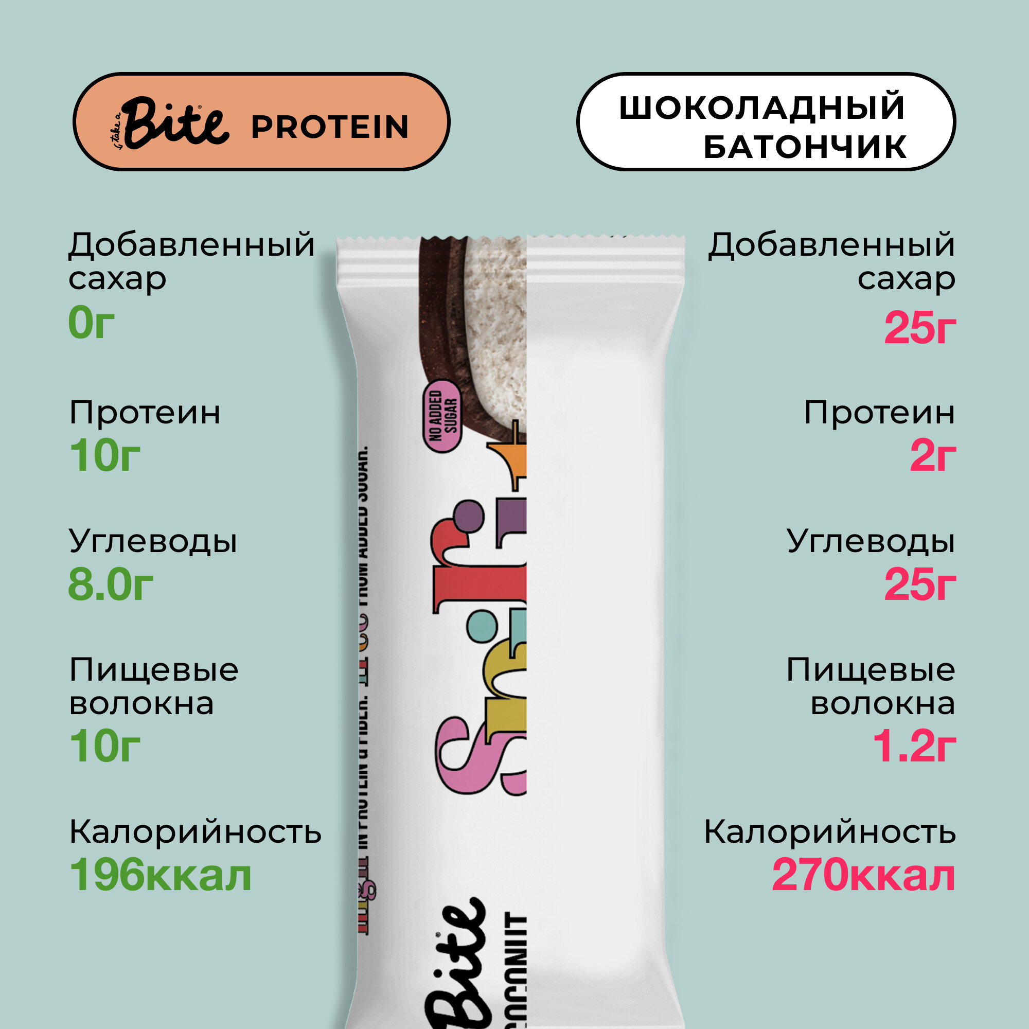 СохранитьПротеиновые батончики без сахара Take a Bite, Кокос, 6 шт по 50 гр интересное: