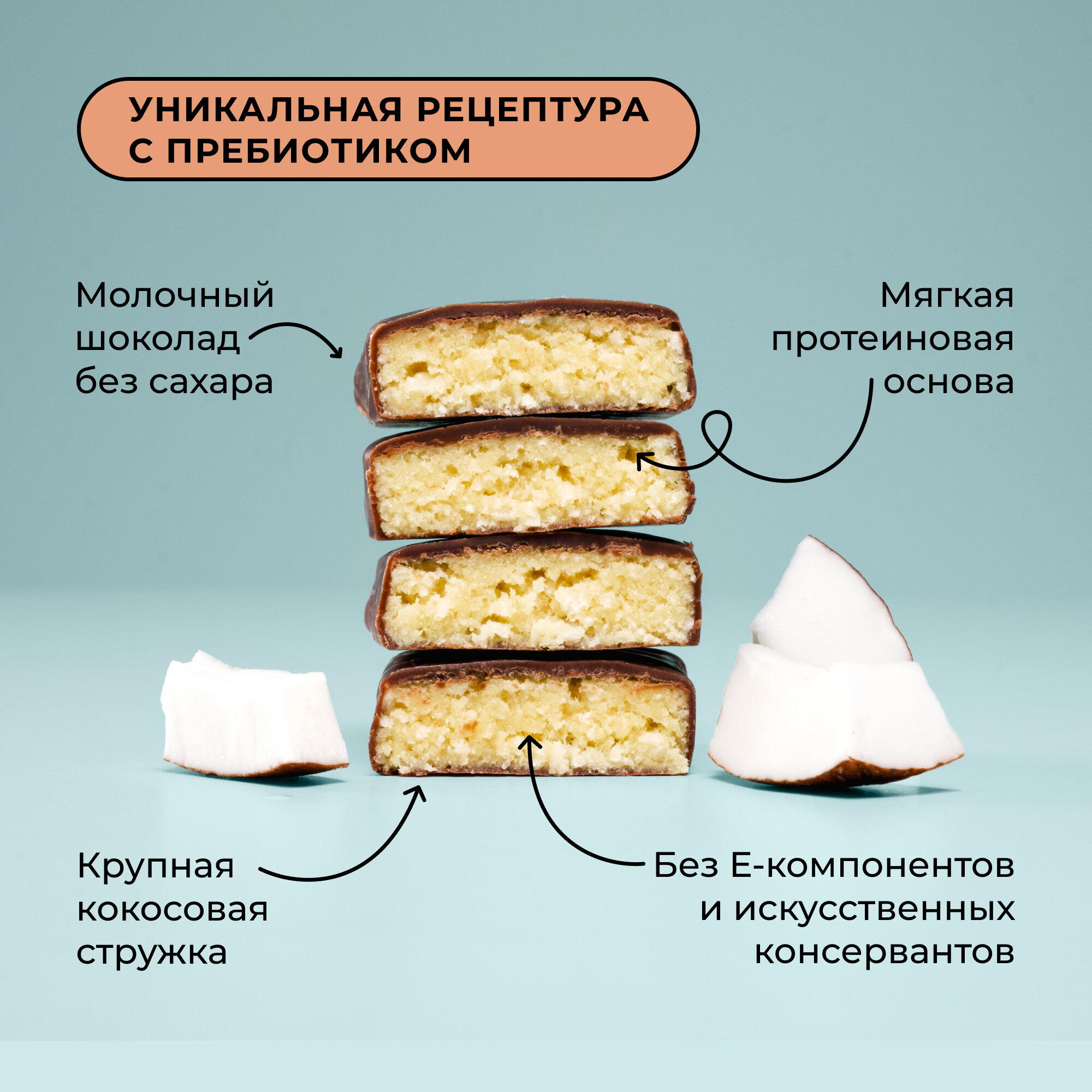 Протеиновые батончики "Кокос" 12 шт PUMP UP Полезное питание , батончик протеиновый с высоким содержанием белка , без сахара .
