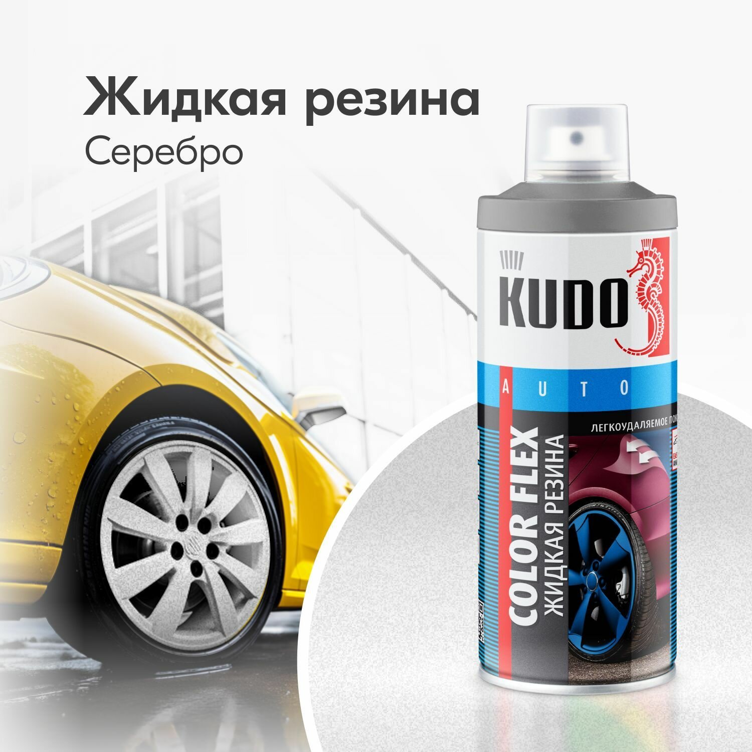 Купить KUDO Жидкая резина COLOR FLEX, аэрозоль 520 мл, серебро, KU-5535