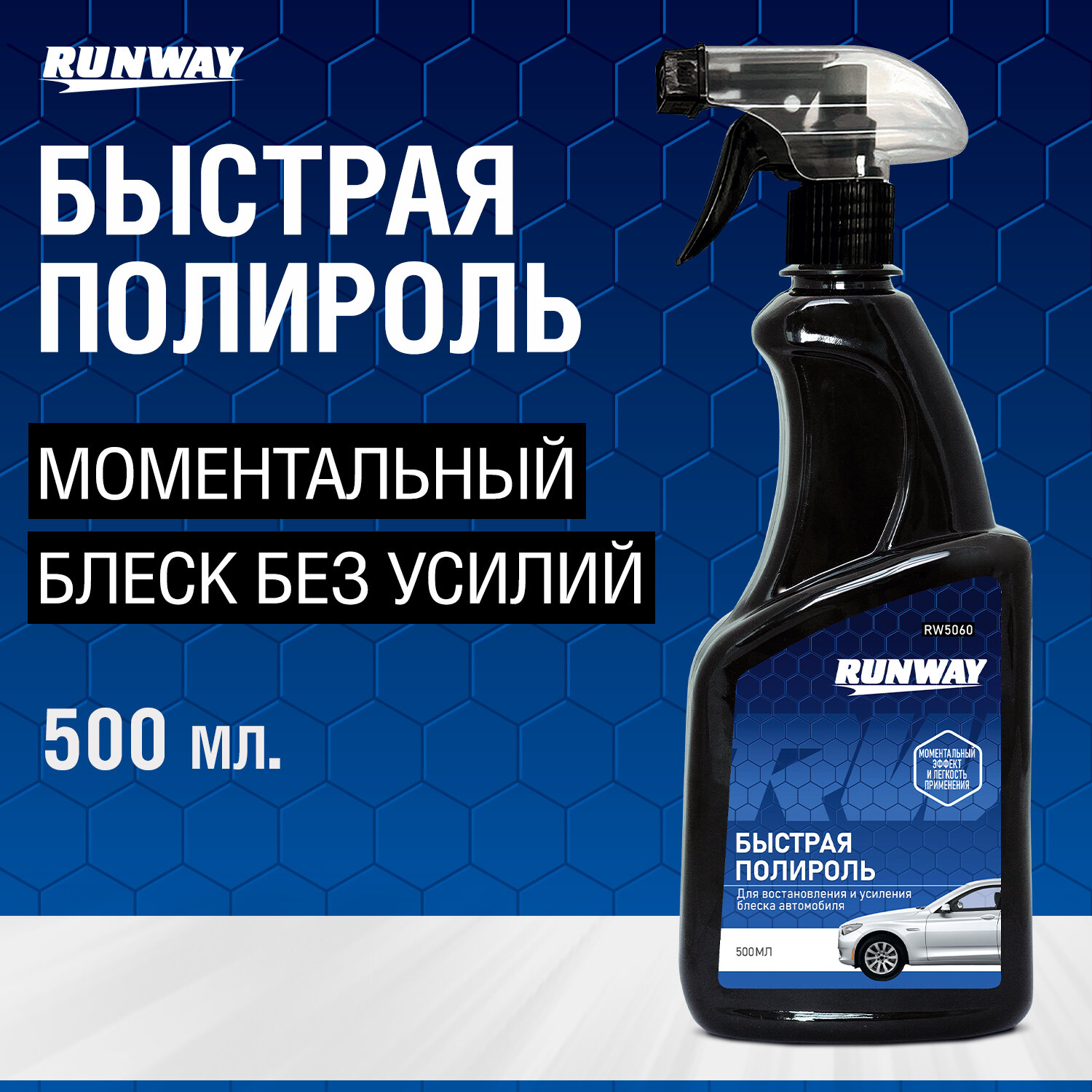 | Дополнительная информация | Полироль кузова RUNWAY RW5060, 500 мл, быстрая |