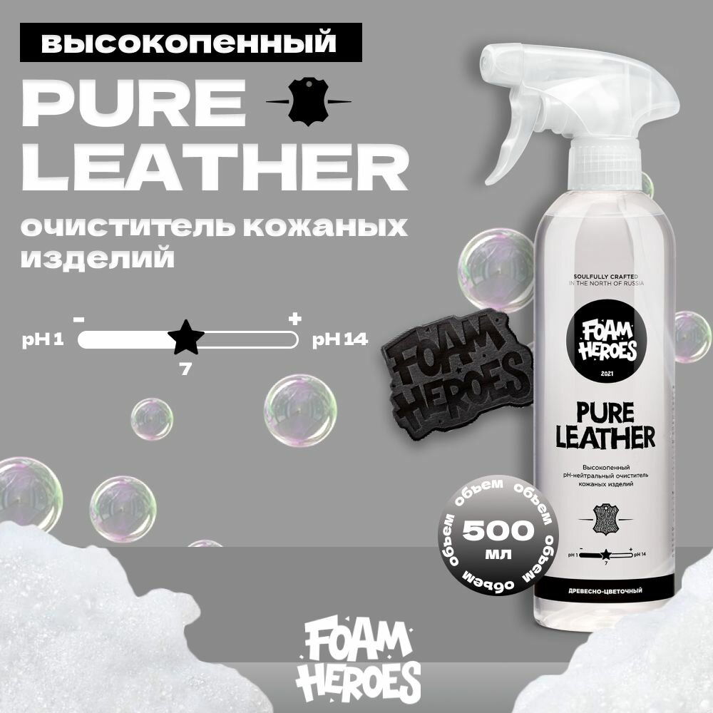 Купить Очиститель кожи деликатный высокопенный Древесно-цветочный Foam Heroes Pure Leather, 500мл