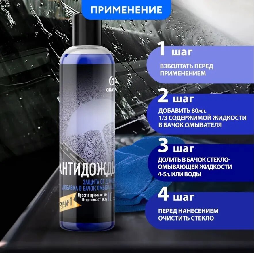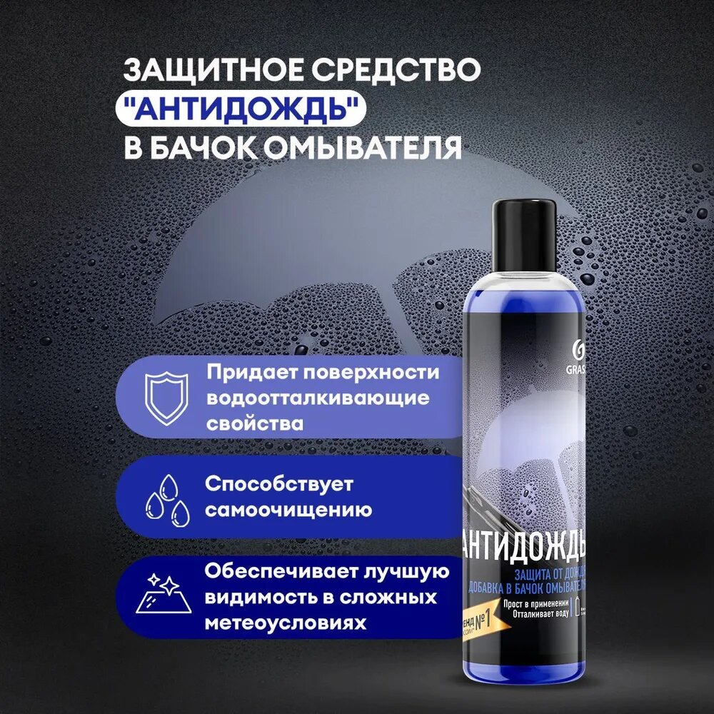 Антидождь В бачок омывателя 250мл/8 - средство для стекол и зеркал GRASS интересное: