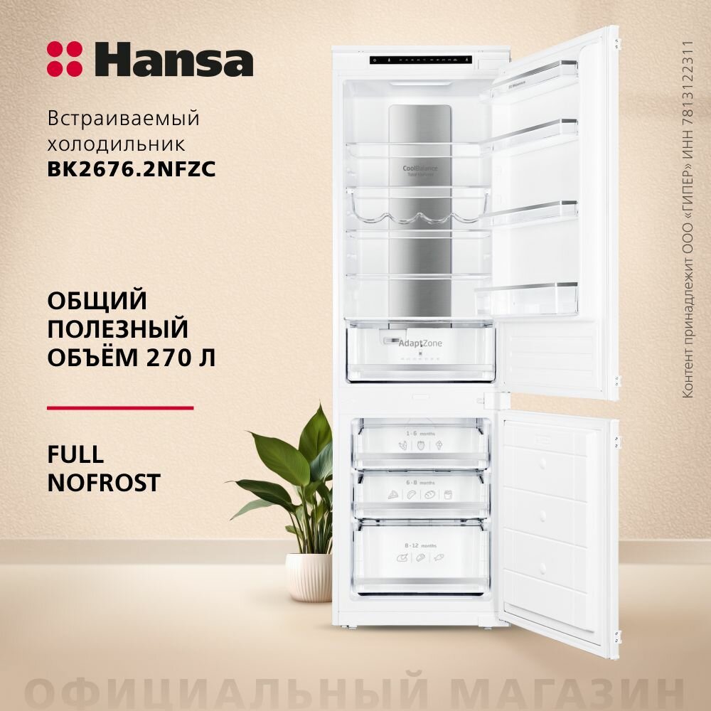 Встраиваемый холодильник Hansa BK2676.2NFZC, белый, 270 л, Full No Frost, зона свежести, суперохлаждение интересное: