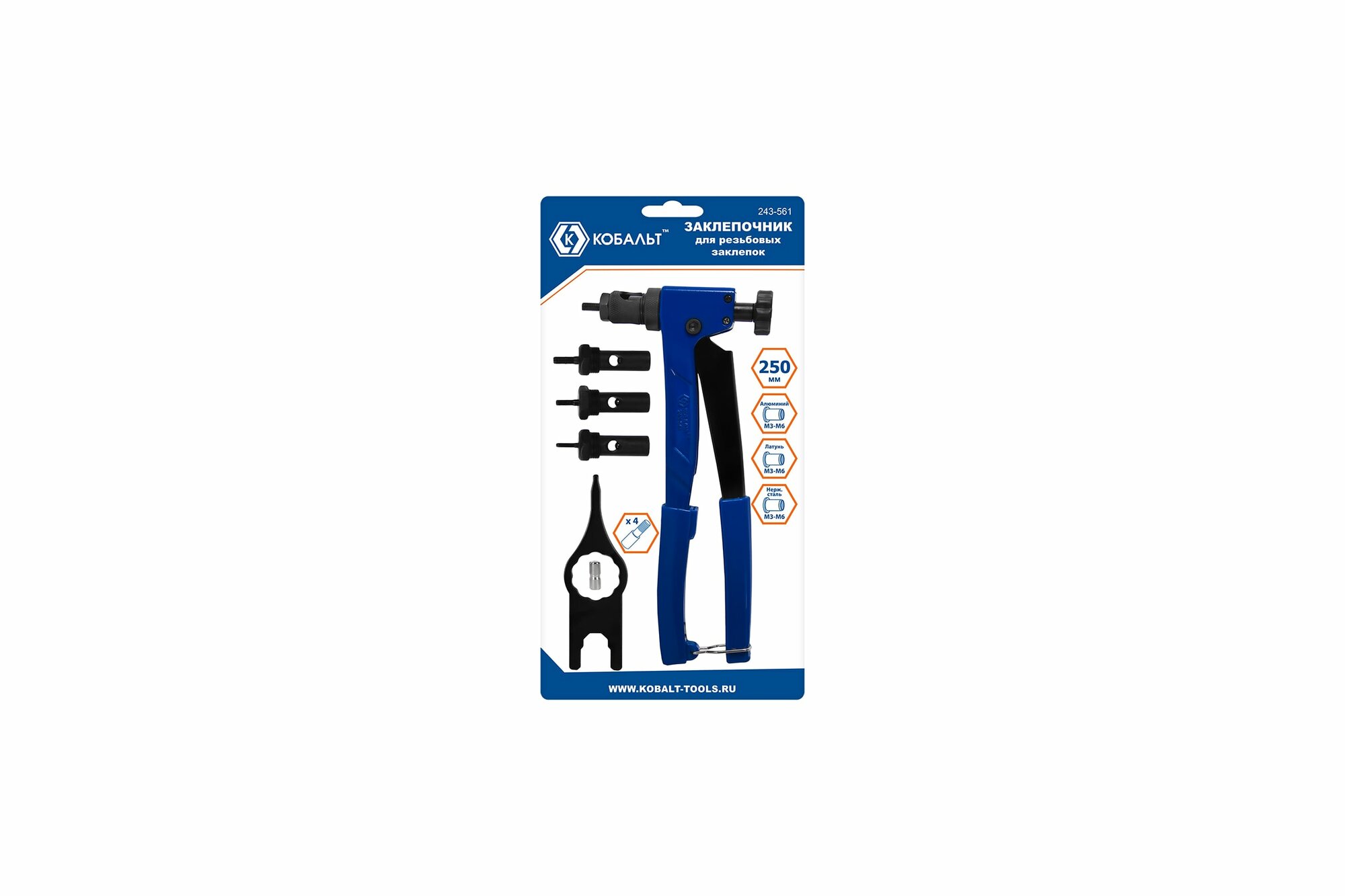 Заклепочник кобальт 250 мм, резьбовые заклепки M3, M4, M5, M6, блистер