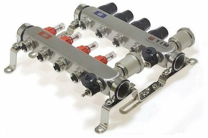 Коллектор TIM на 8 выхода из нержавеющей стали с расходомерами