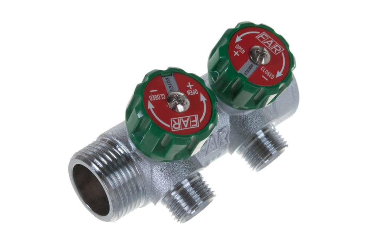 Коллектор Far (FK 3821 134 ) 1 ВР(г) х 2 выхода 3/4 НР(ш) х 1 НР(ш) регулируeмый