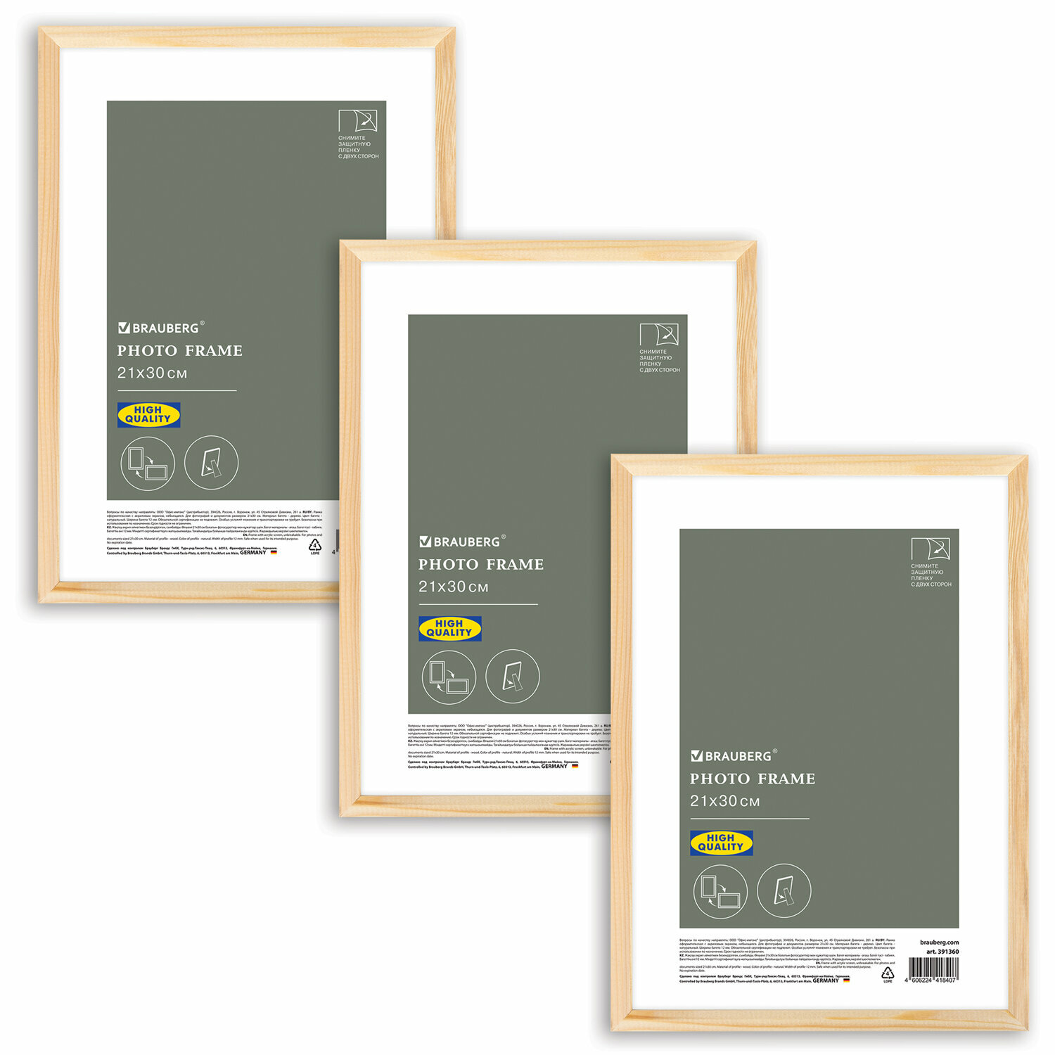 СохранитьРамка для фото А4, фоторамка 21х30 см для фотографий, картин, грамот, вышивки небьющаяся, набор 3 штуки, багет 12мм натуральное дерево, Brauberg, цвет натуральный, 391388 интересное: