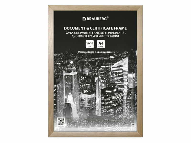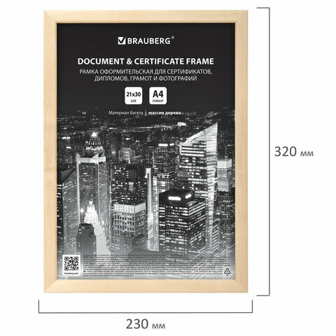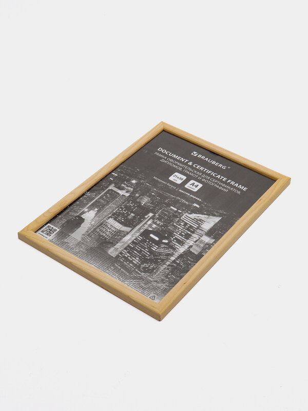 Рамка оформительская Brauberg 21х30 см, дерево, багет 14 мм, цвет натуральный (391296)