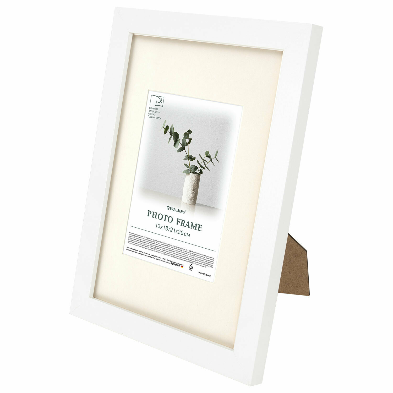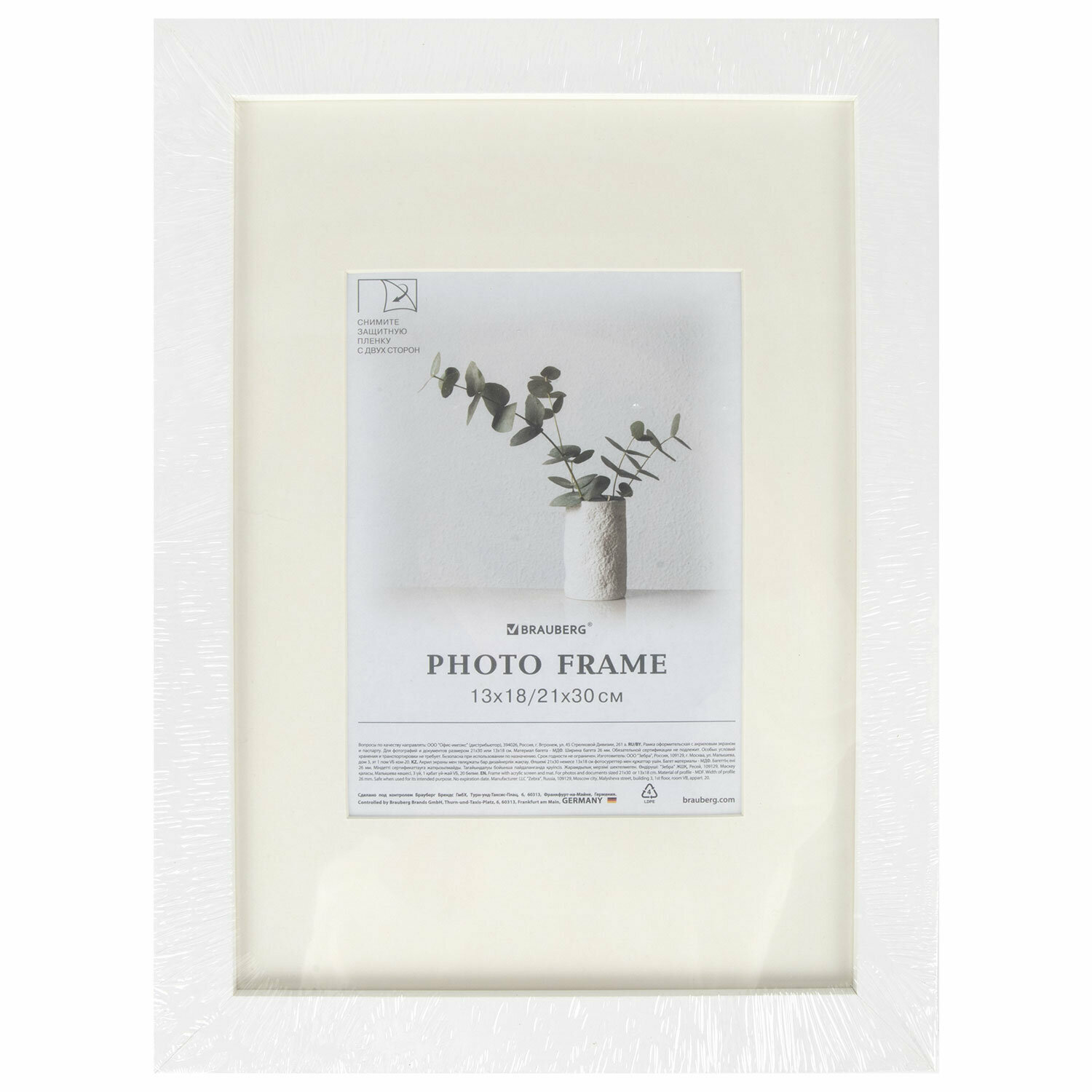 Рамка Brauberg 30х40 см, с паспарту 21х30 см, небьющаяся, багет 26 мм, МДФ, "Ambassador", белая
