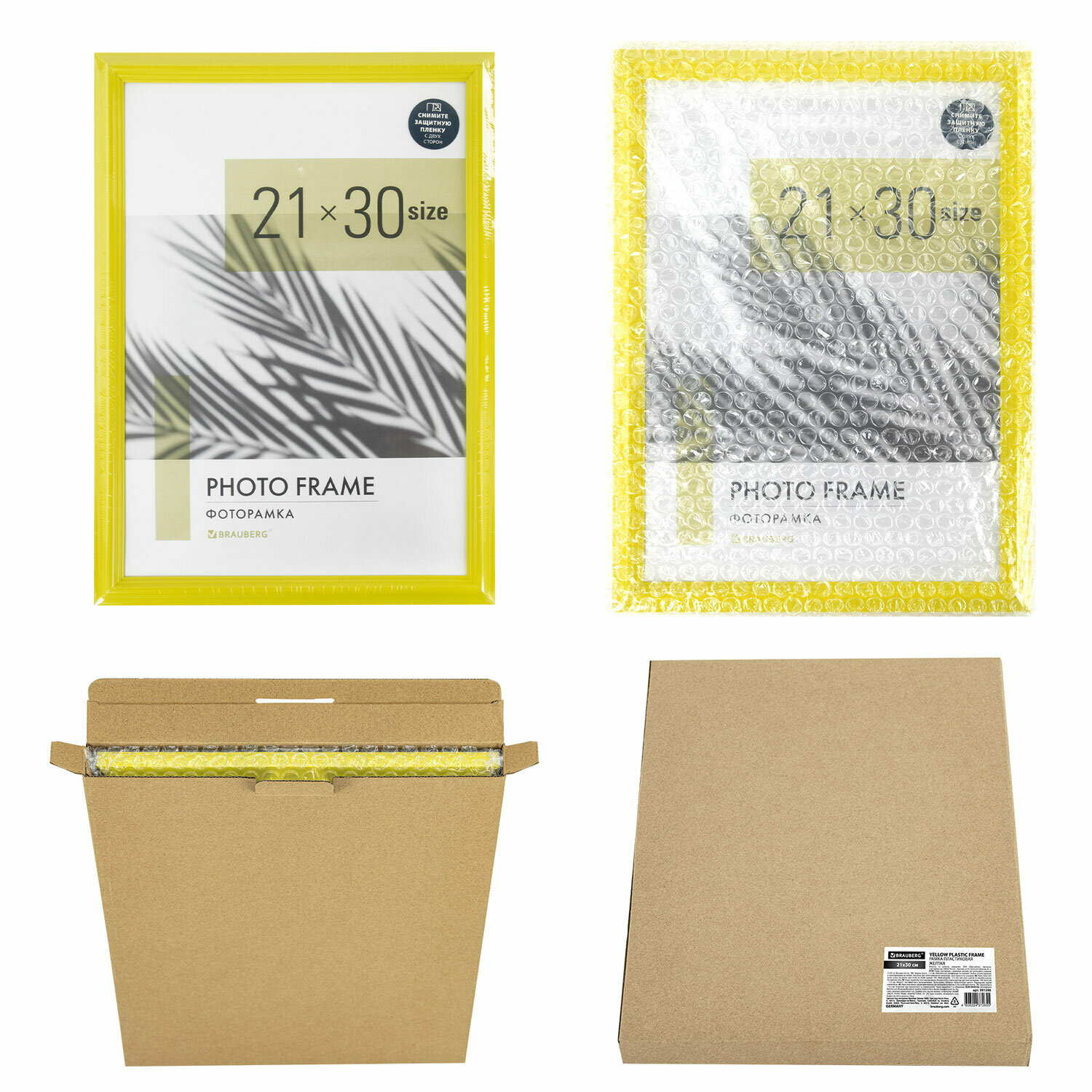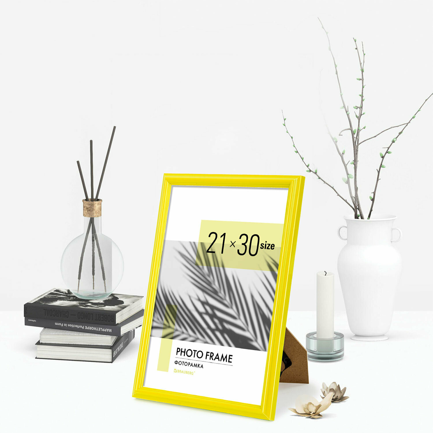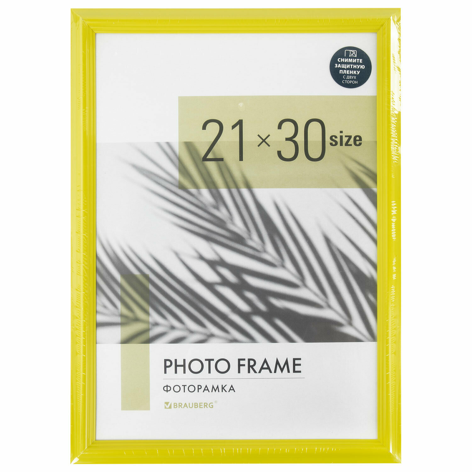 Купить Рамка (фоторамка) для фото, фотографий, картин, грамот на стену А4 21х30 см небьющаяся, багет 17,5 мм, пластик, Brauberg Colorful, желтая, 391246