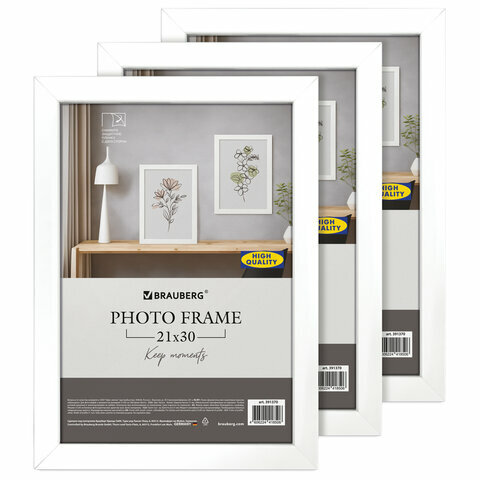 Купить Рамка 21х30 см небьющаяся, комплект 3 штуки, багет 21 мм, МДФ, BRAUBERG "Idea", белая, 391392