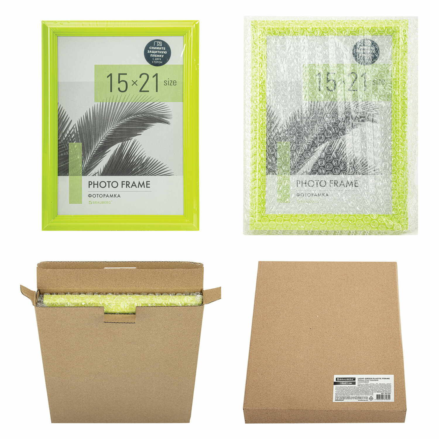 Рамка 15х21 см небьющаяся, багет 17,5 мм, пластик, BRAUBERG "Colorful", салатовая, 391243