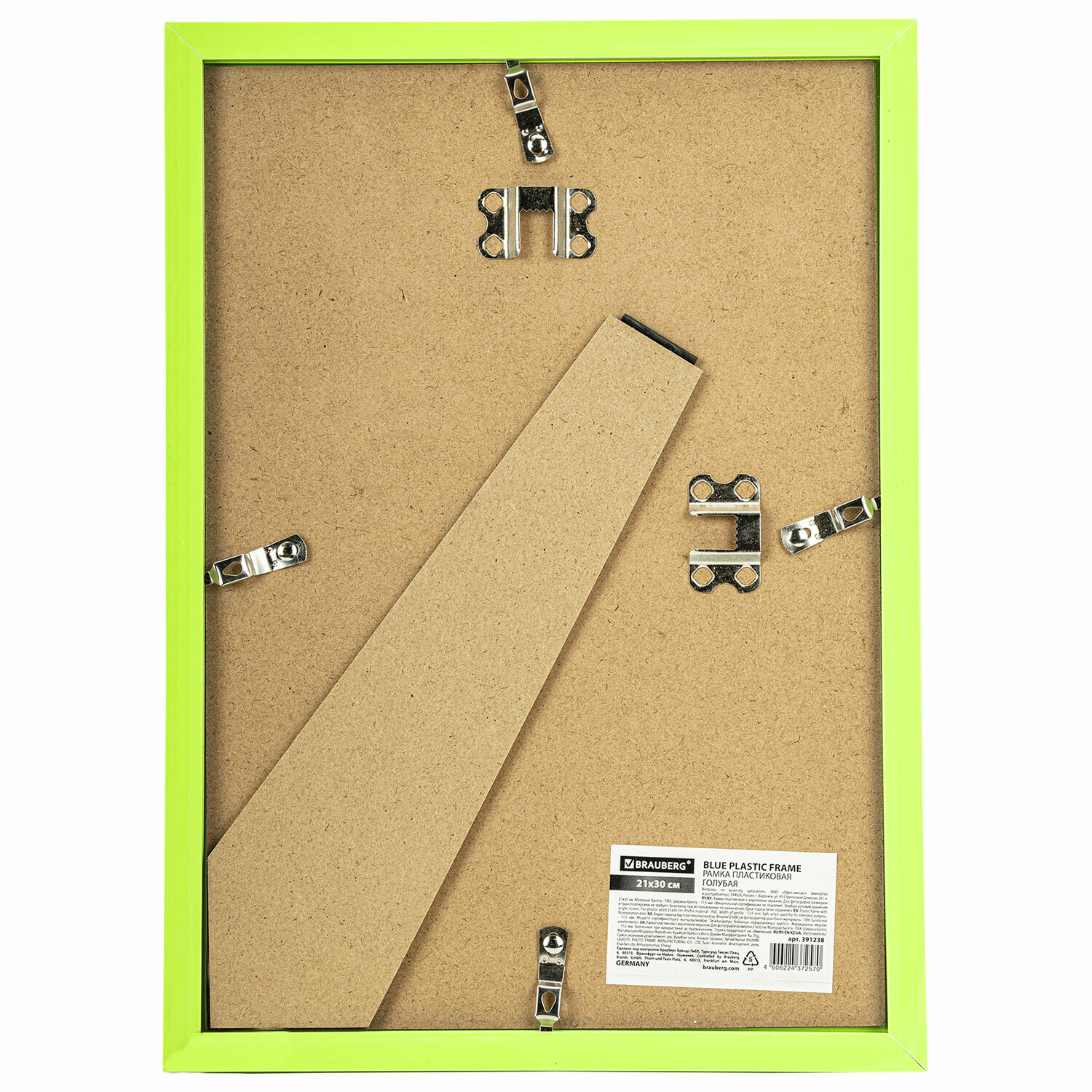Купить Рамка (фоторамка) для фото, фотографий, картин, грамот на стену А4 21х30 см небьющаяся, багет 17,5 мм, пластик, Brauberg Colorful, салатовая, 391244