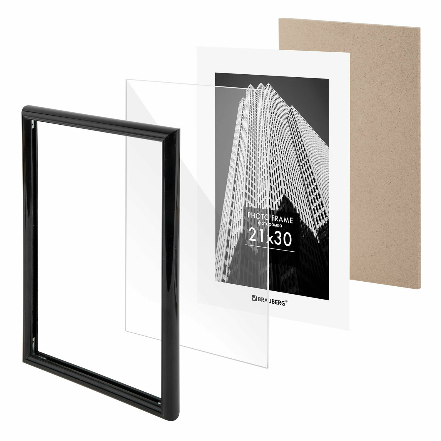 Рамка Brauberg 21х30 см, небьющаяся, багет 14,6 мм, пластик, "Original Line", черная|серебро