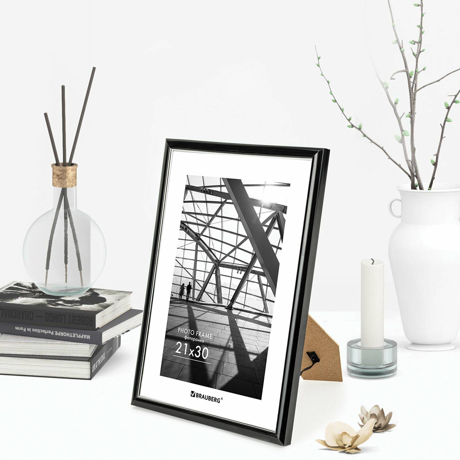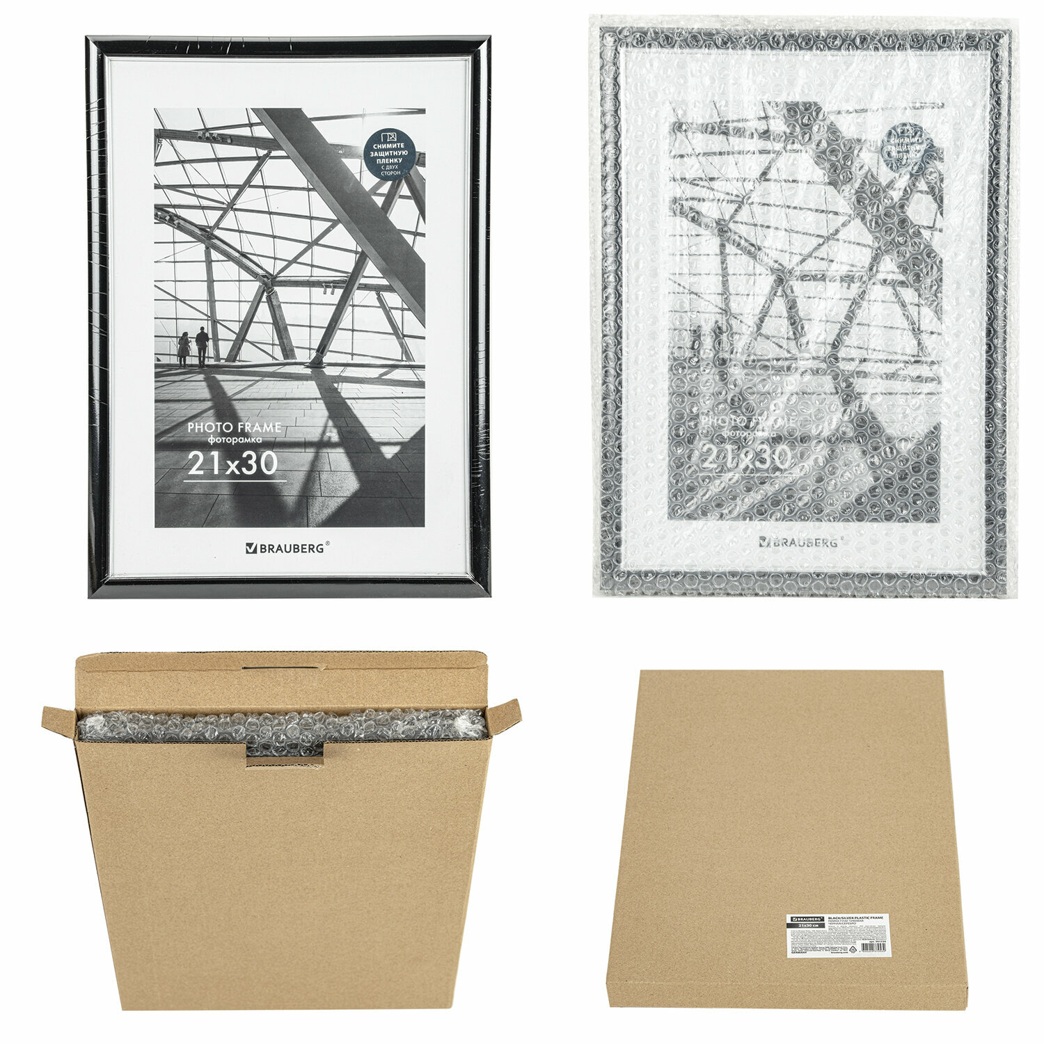 Рамка 21х30 см небьющаяся, багет 14,6 мм, пластик, BRAUBERG "Original Line", черная/серебро, 391234 (391234)