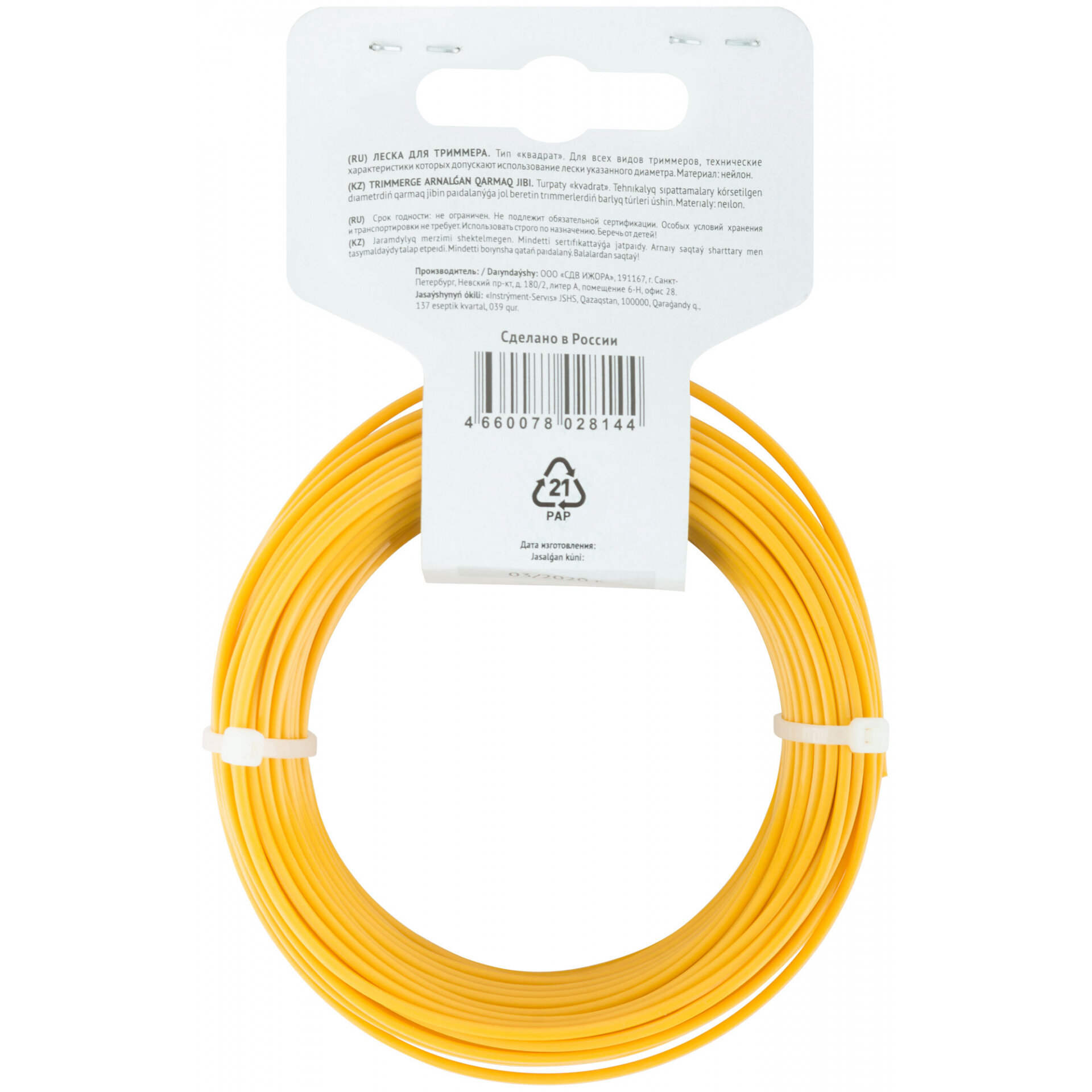 Леска для садовых триммеров "Квадрат" 2,5 мм х 25 м