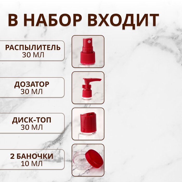 Дорожный флакон ONLITOP, 5 шт., 30 мл, белый/прозрачный