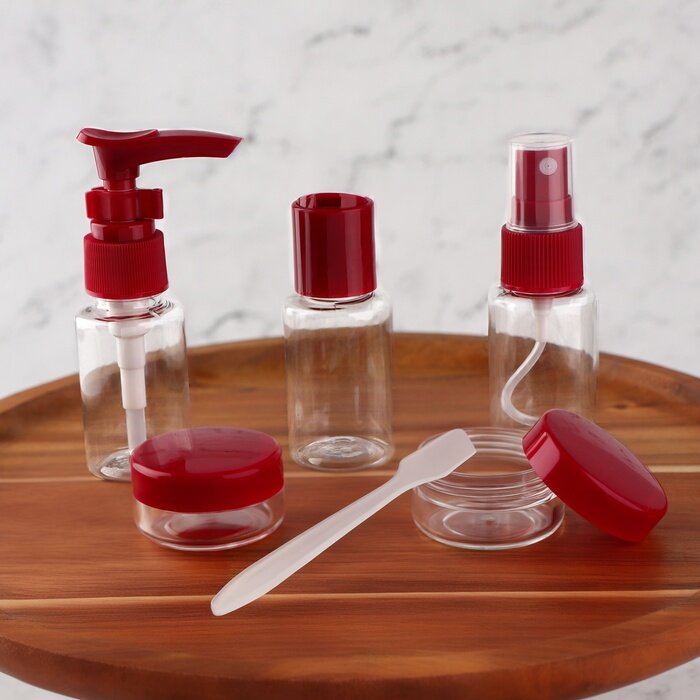 Набор для хранения, в чехле, 6 предметов, цвет прозрачный/бордовый