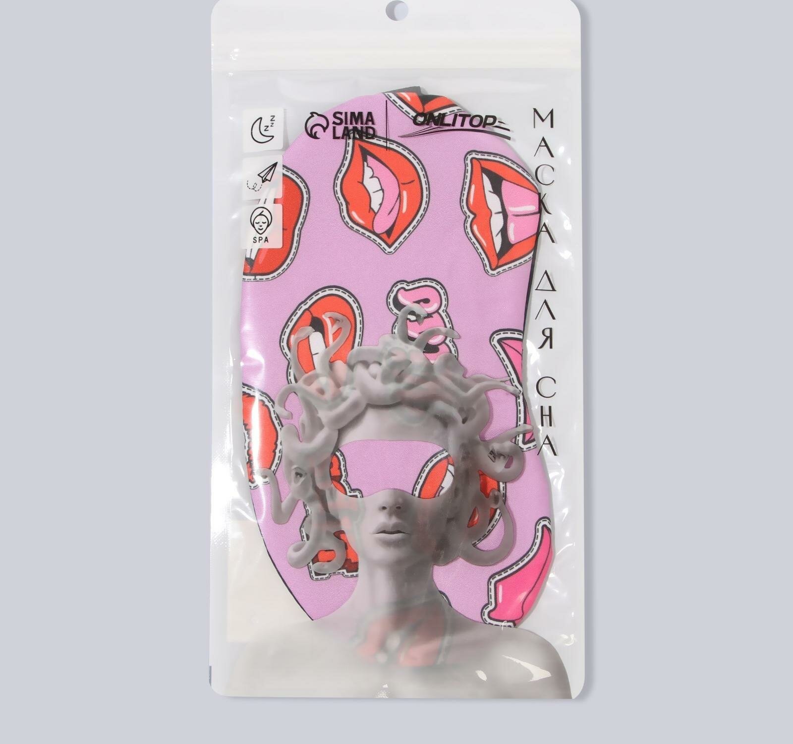 Маска для сна ONLITOP - Губки, резинка одинарная, 19.5 х 9.5 см, 1 шт.