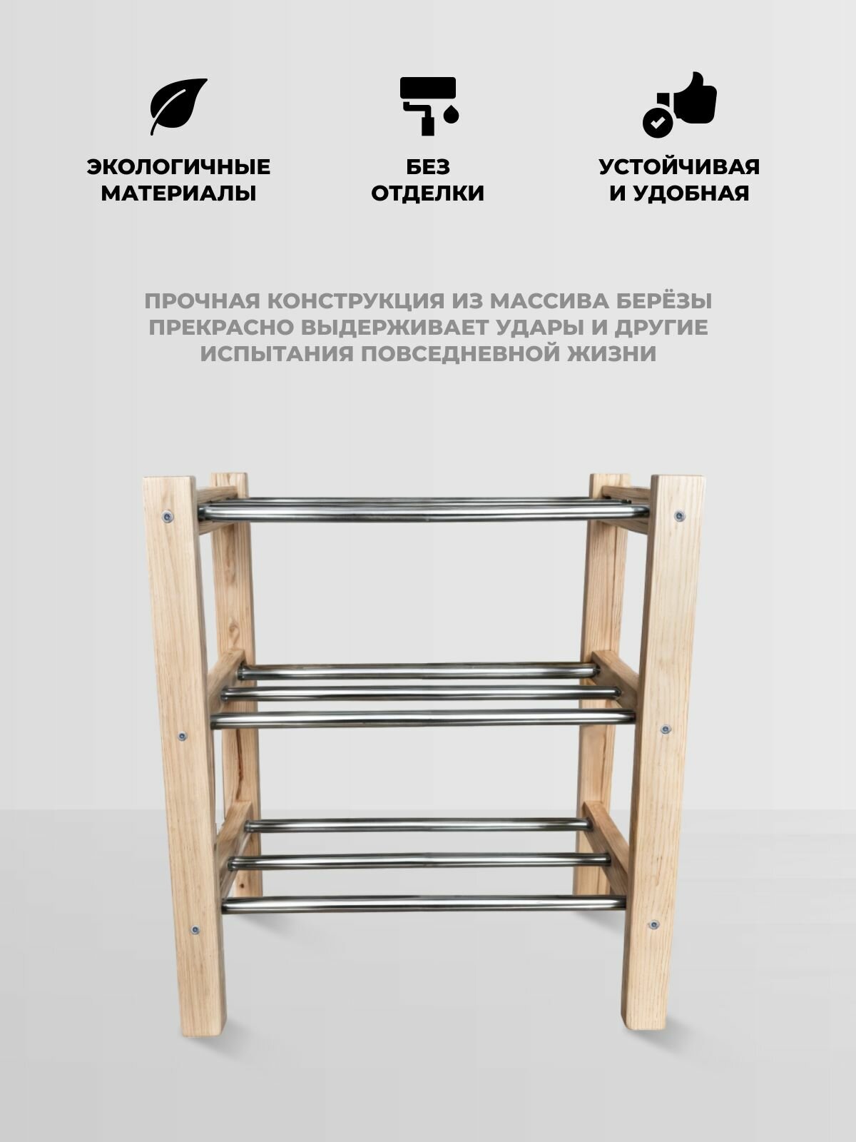 Обувница, деревянная полкадля обуви, органайзер этажерка для обуви без покрытия, подходит под окраску 80х28х53см