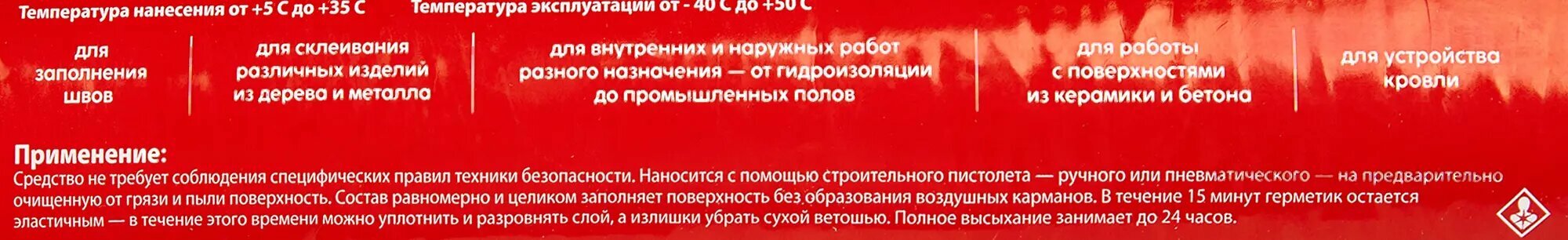 | Дополнительная информация | время затвердевания при +23°С и 65% относительной влажности: 3 мм/сут |