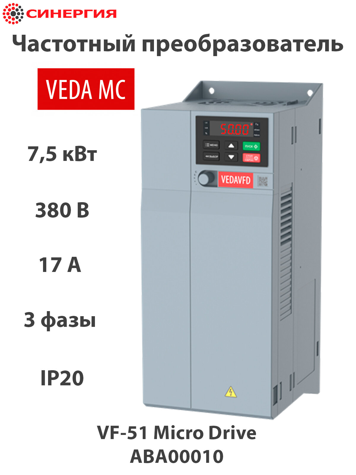 Преобразователь частоты VF-51-P7K5-0016-T4-E20-B-H вход. 380В выход. 7.5кВт выход. 16А | код ABA00010 | VEDA ( 1шт. )