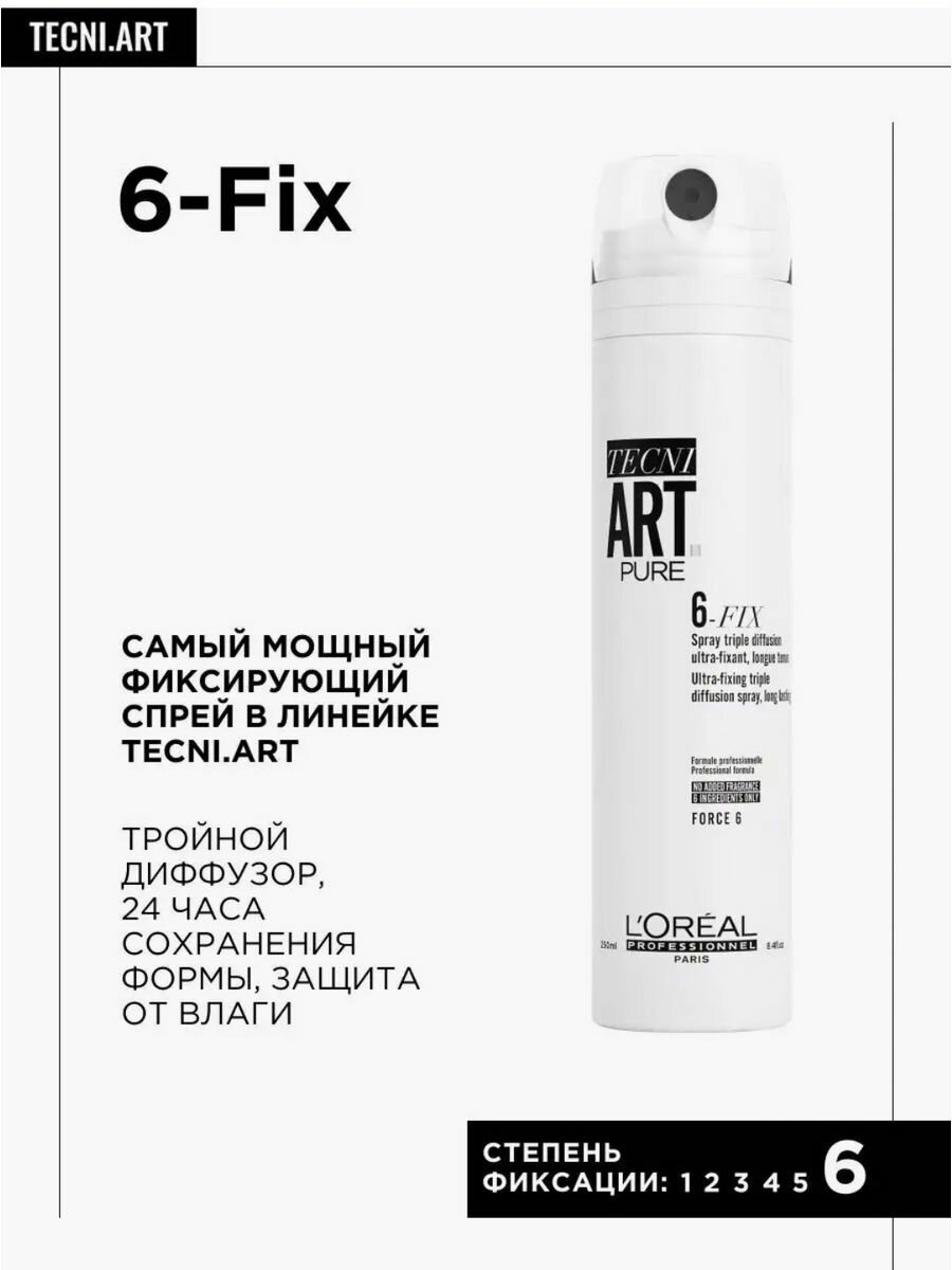 L'Oreal Professionnel Спрей для фиксации волос Tecni.Art 6-Fix Pure, экстрасильная фиксация, 250 мл