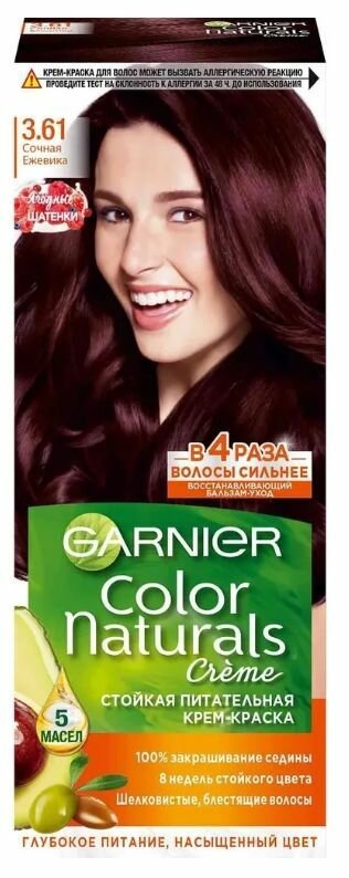 Ниже Вы можете прочитать отзывы на Garnier Стойкая крем-краска для волос Color Naturals, тон 3.61 Сочная ежевика, 110 мл, 2 шт, ознакомится с подробными характеристиками, посмотреть интересные обзоры и фотографии на Garnier Стойкая крем-краска для волос Color Naturals, тон 3.61 Сочная ежевика, 110 мл, 2 шт.
