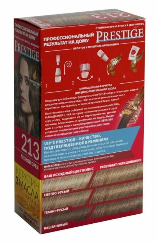 Купить VIP's Prestige Бриллиантовый блеск стойкая крем-краска для волос, 213 - лесной орех