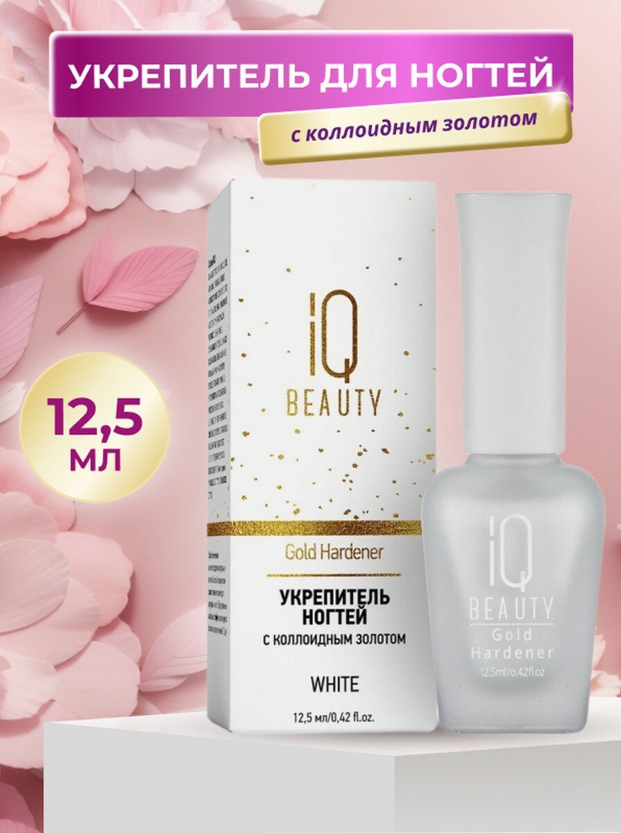Купить Укрепитель IQ BEAUTY, для ослабленных и ломких ногтей с коллоидным золотом Gold Hardener White, 12,5мл