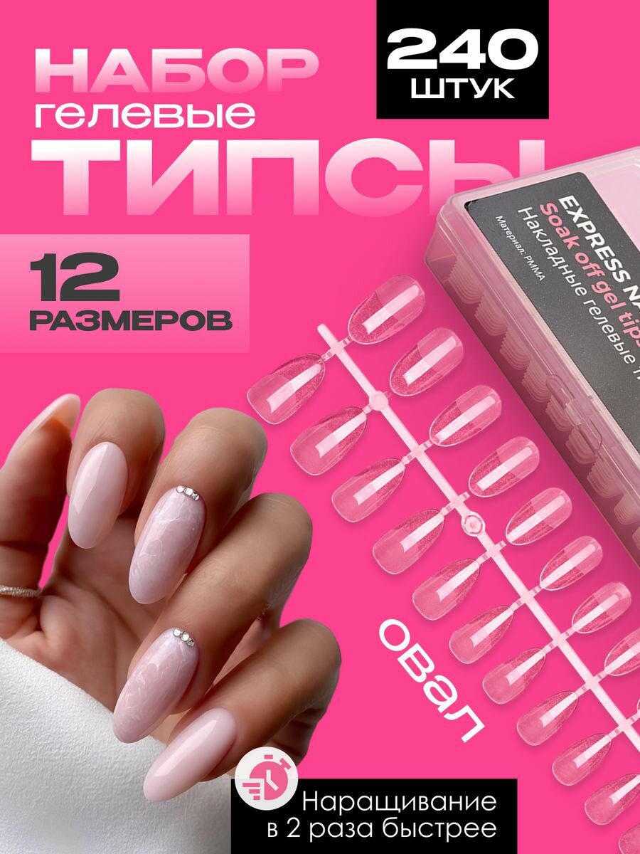 Купить Гелевые типсы для экспресс наращивания, прозрачные, Овал, размеры 0-11, 240 шт