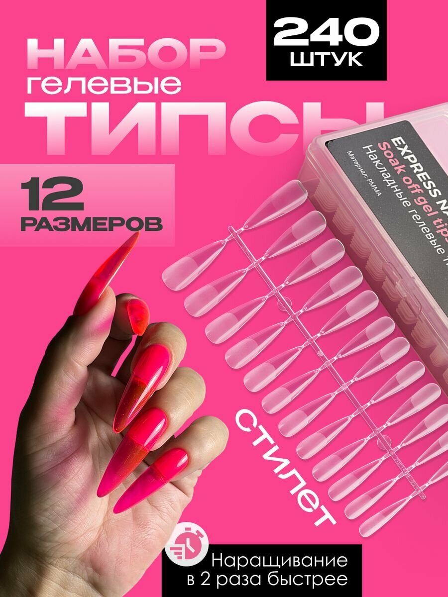 Купить Гелевые типсы для экспресс наращивания, прозрачные, Стилет, размеры 0-11, 240 шт