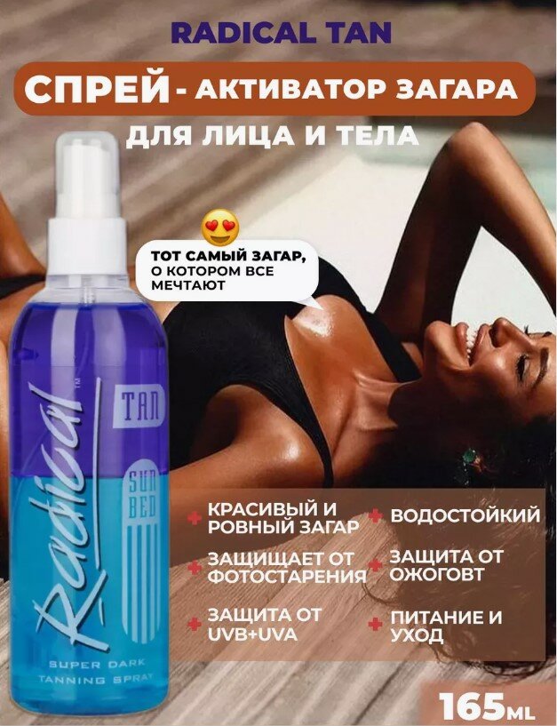 Radical Tan Super Dark 165 ml, Лосьон для загара в солярии и на солнце, максимальный оттенок без бронзаторов интересное: