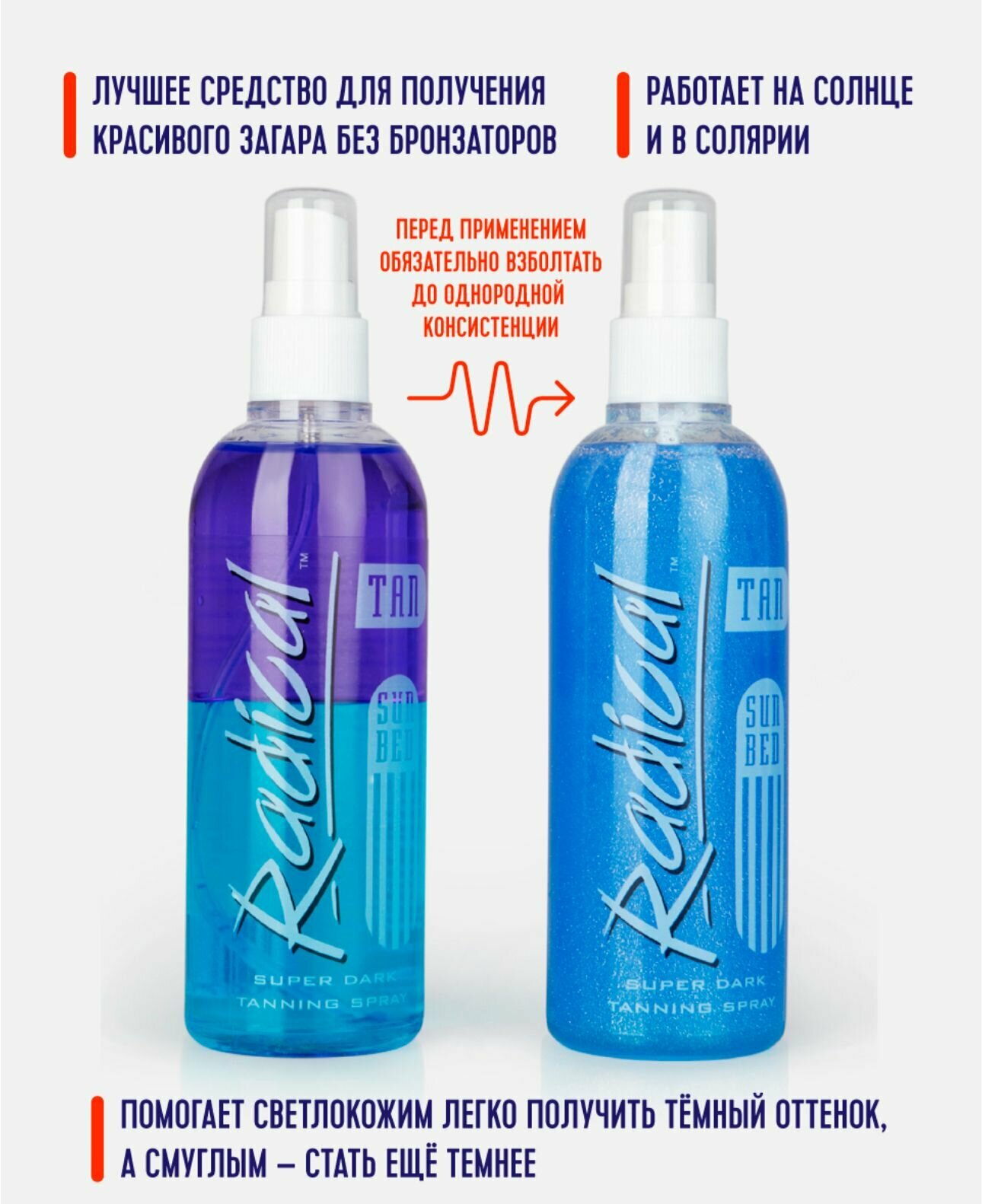 Масло для загара в солярии и на солнце Radical Tan Super Dark Tanning Spray, максимальный оттенок без бронзаторов, 165 мл