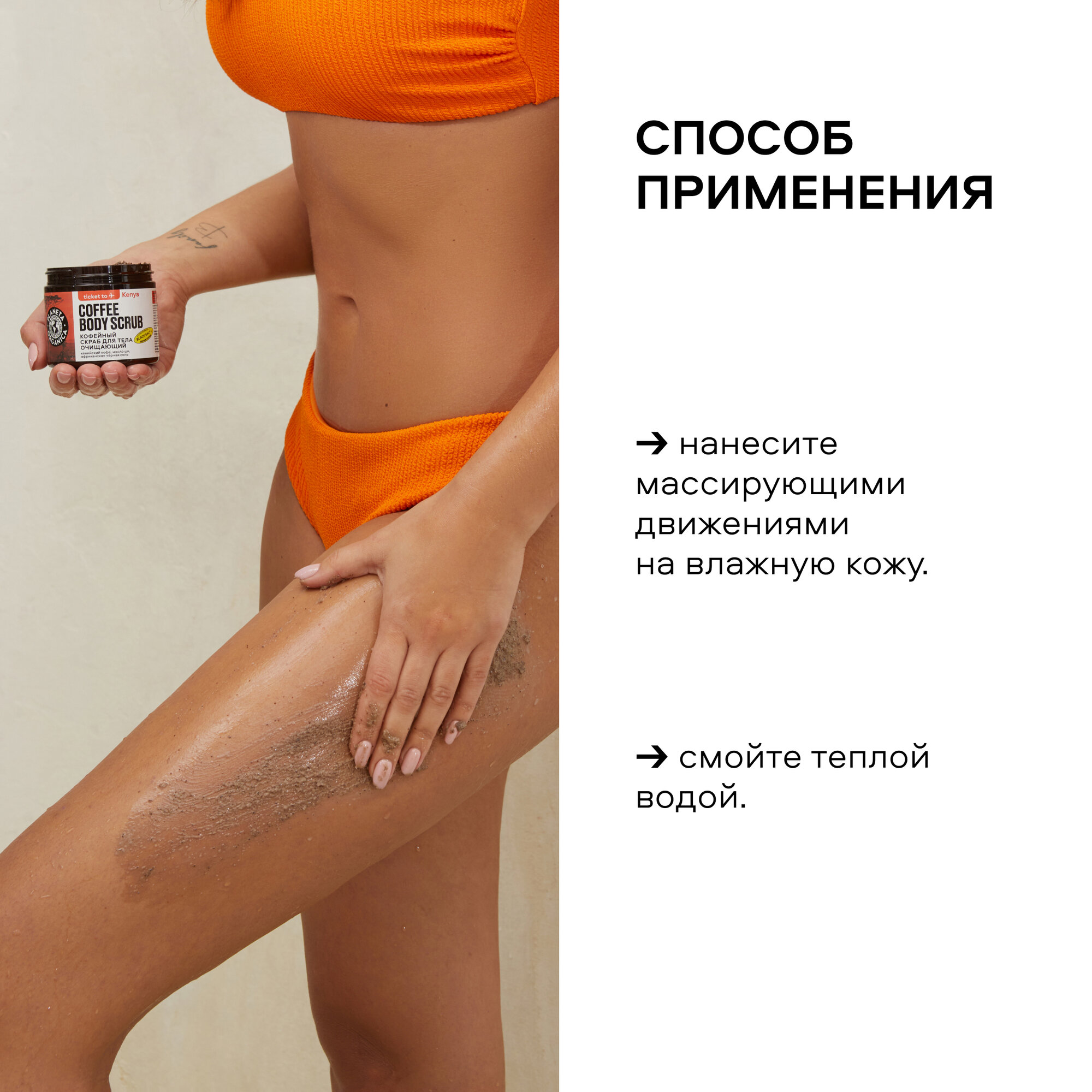 | Дополнительная информация | ОЧИЩАЮЩИЙ КОФЕЙНЫЙ СКРАБ ДЛЯ ТЕЛА с ярким заряжающим ароматом и роскошной текстурой прекрасно отшелушивает кожу, подтягивает и делает её невероятно гладкой., КЕНИЙСКИЙ КОФЕ радует моментальным результатом — питание, подтянутость и ровный цвет обеспечены., Кофейная ароматерапия расслабляет и одновременно заряжает энергией., МАСЛО ШИ оказывает выраженное смягчающее действие на кожу, устраняет шелушения и мелкие повреждения, придаёт эластичность., АФРИКАНСКАЯ ЧЕРНАЯ СОЛЬ прекрасно отшелушивает, делает рельеф кожи гладким., Придаёт ухоженный и здоровый вид коже. |
