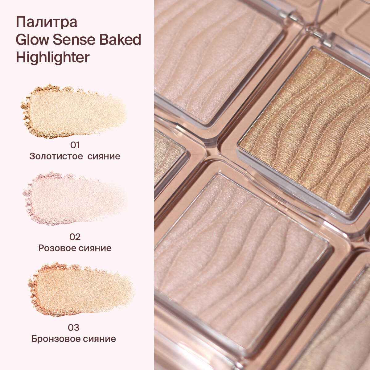 СохранитьDivage Хайлайтер для лица запеченный Glow Sense Baked Highlighter, тон 02 интересное: