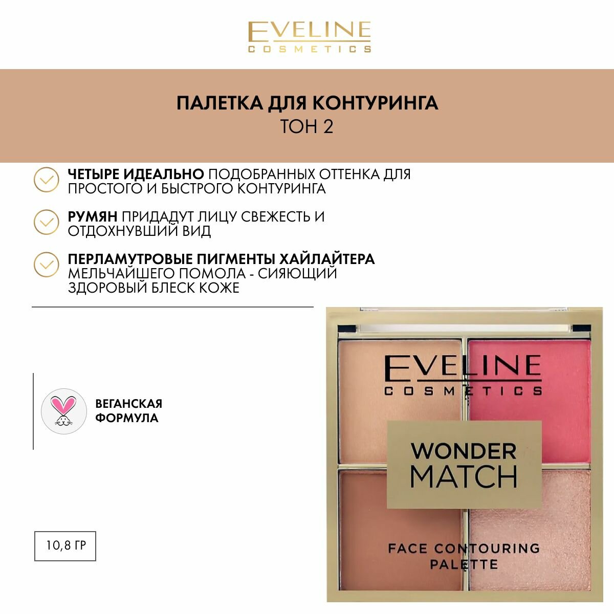 Палетка для контуринга EVELINE WONDER MATCH тон 2 (бронзер, румяна, хайлайтер)
