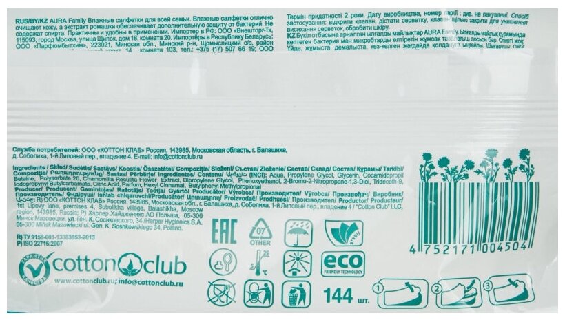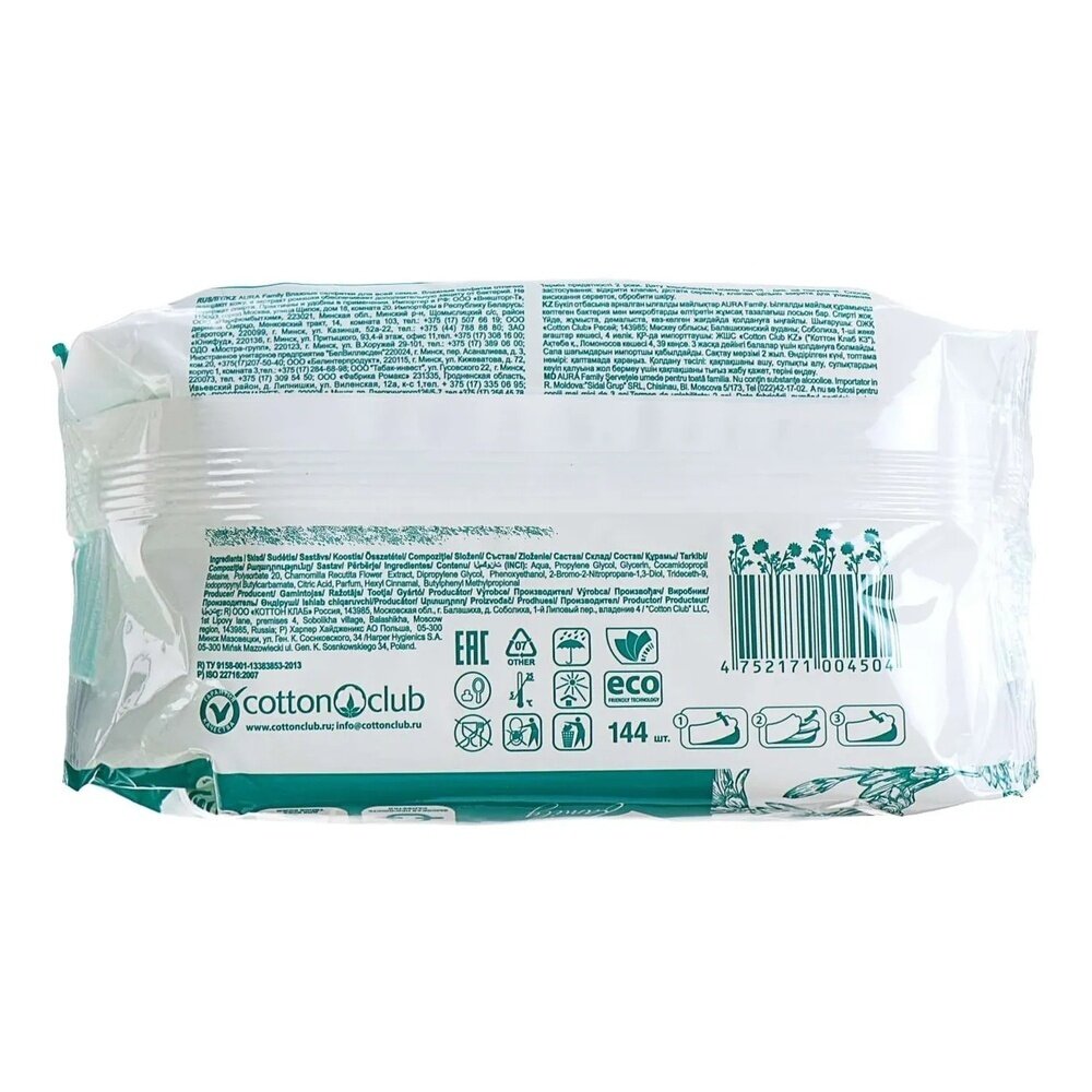 "Aura Family" Антибактериальные влажные салфетки 144шт интересное: