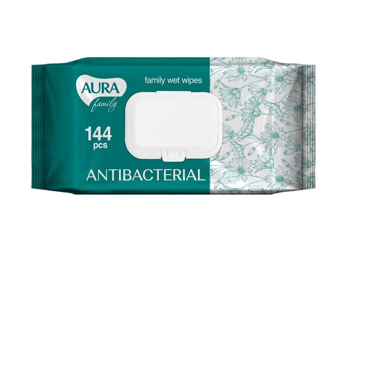 AURA FAMILY Салфетки влажные антибактериальные, с крышкой, 144 шт/уп, 2 уп
