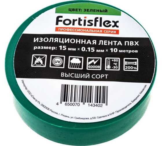FORTISFLEX Изолента ПВ 15 0.15 10 зеленая 71225