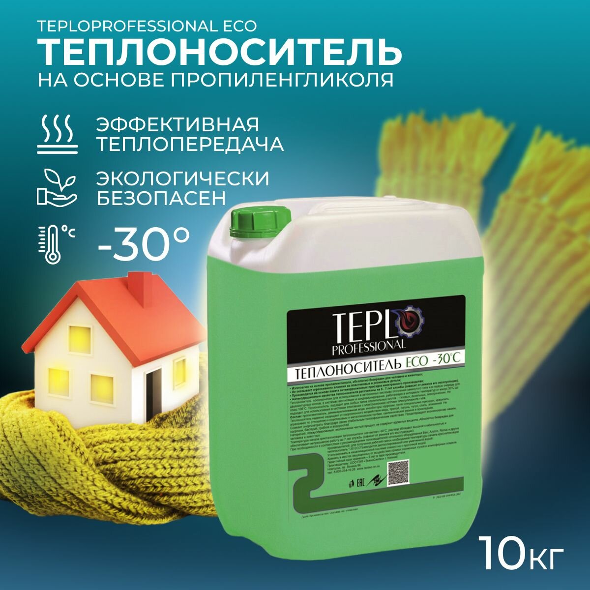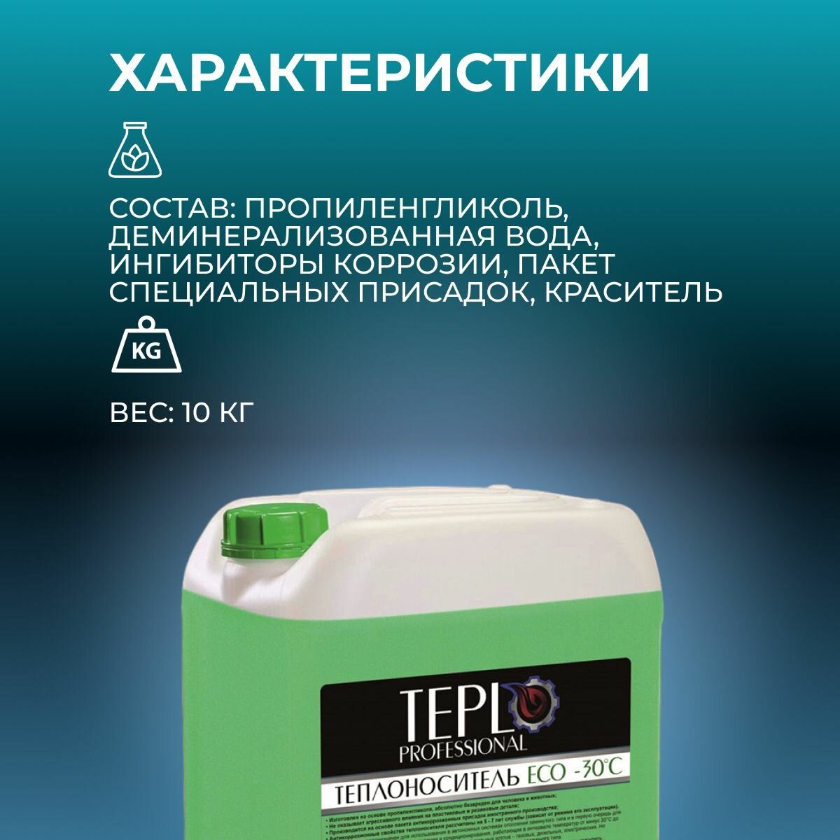 Теплоноситель TEPLO Professional ECO - 30, основа пропиленгликоль, 10 кг