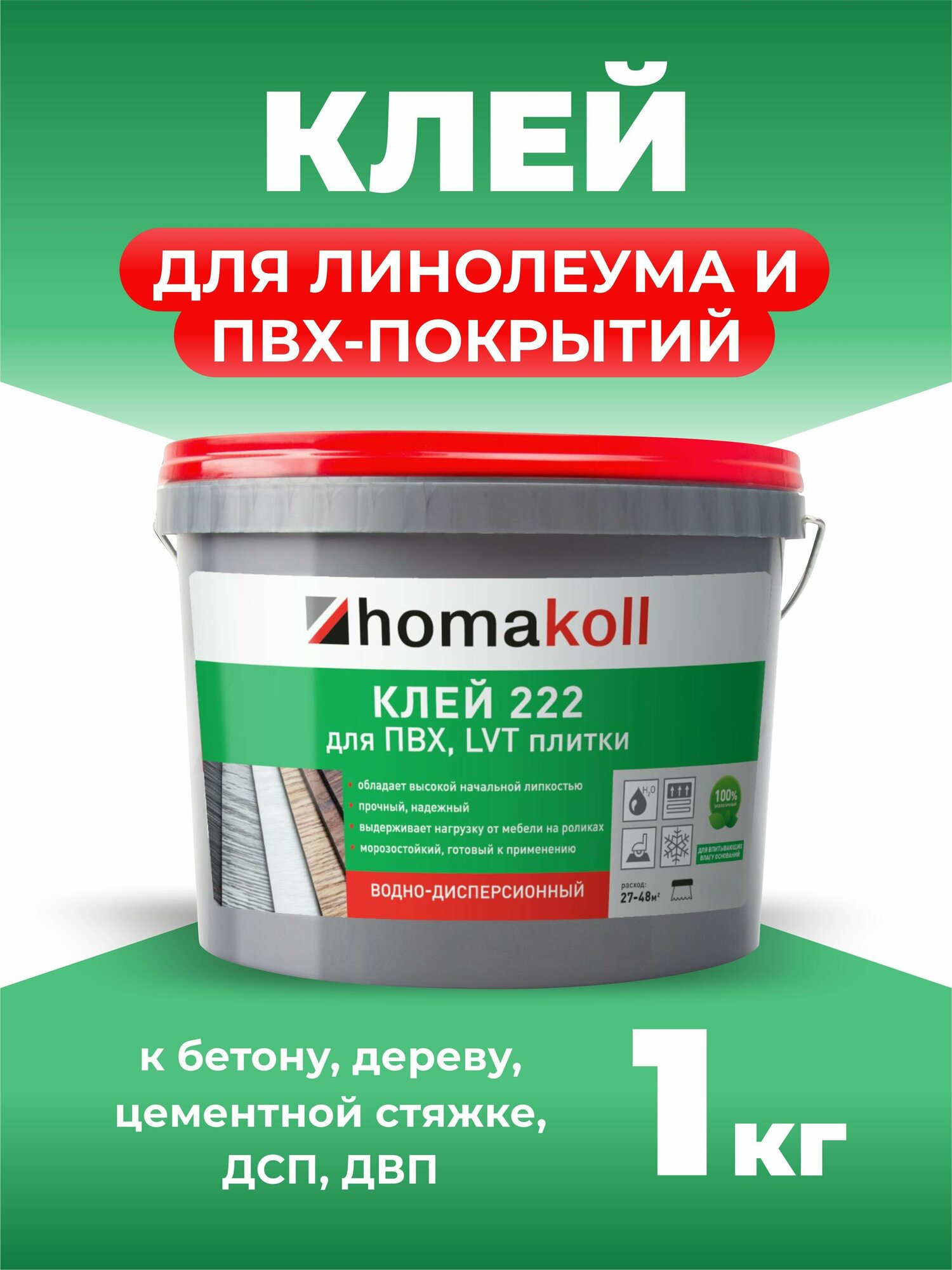 Клей homakoll 222 для линолеума, LVT, кварц виниловой плитки, 6 кг