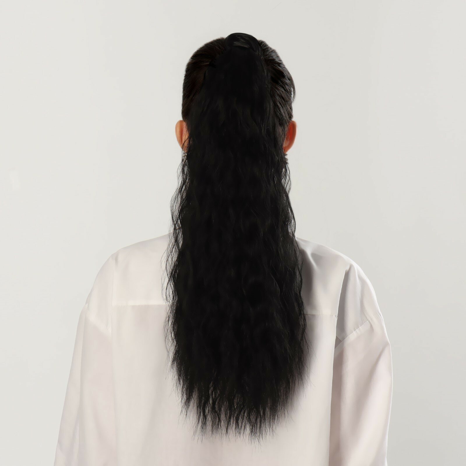 Купить QF Хвост накладной, волнистый волос, на резинке, 60 см, 100 гр, цвет чёрный(#SHT3)