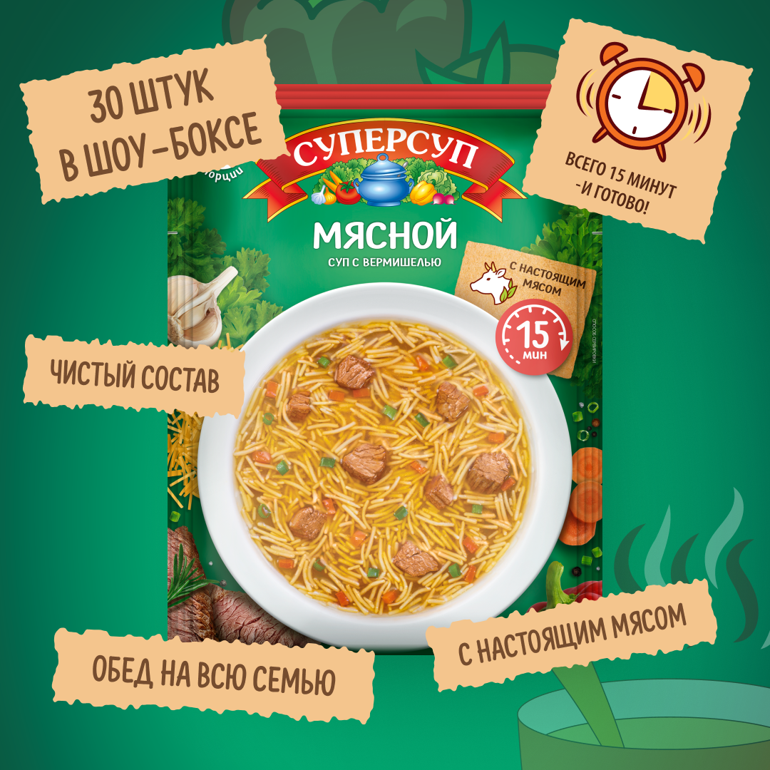 Суп Мясной 70 гр x 30 шт, Суперсуп интересное: