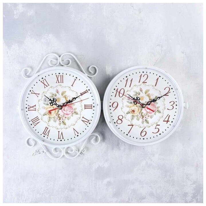Часы настенные двойные, серия: Садовые, "WELCOME", белые, d=23 см, 47х31 см 2839878 .