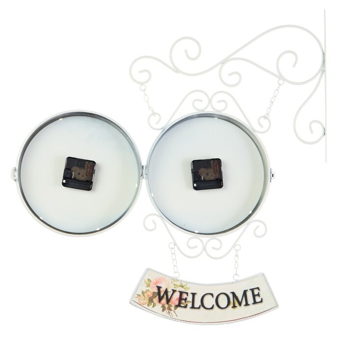 Купить Часы настенные двусторонние, на подвесе "WELCOME", d-23 см, 47 х 31 см, 2 АА, белые